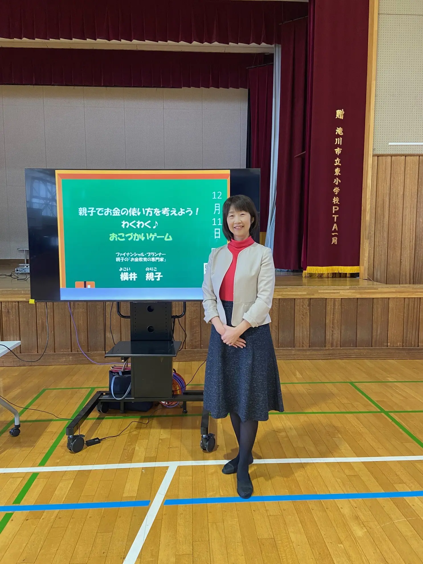 三角屋根が特徴である、滝川市立東小学校でのおこづかいゲーム!