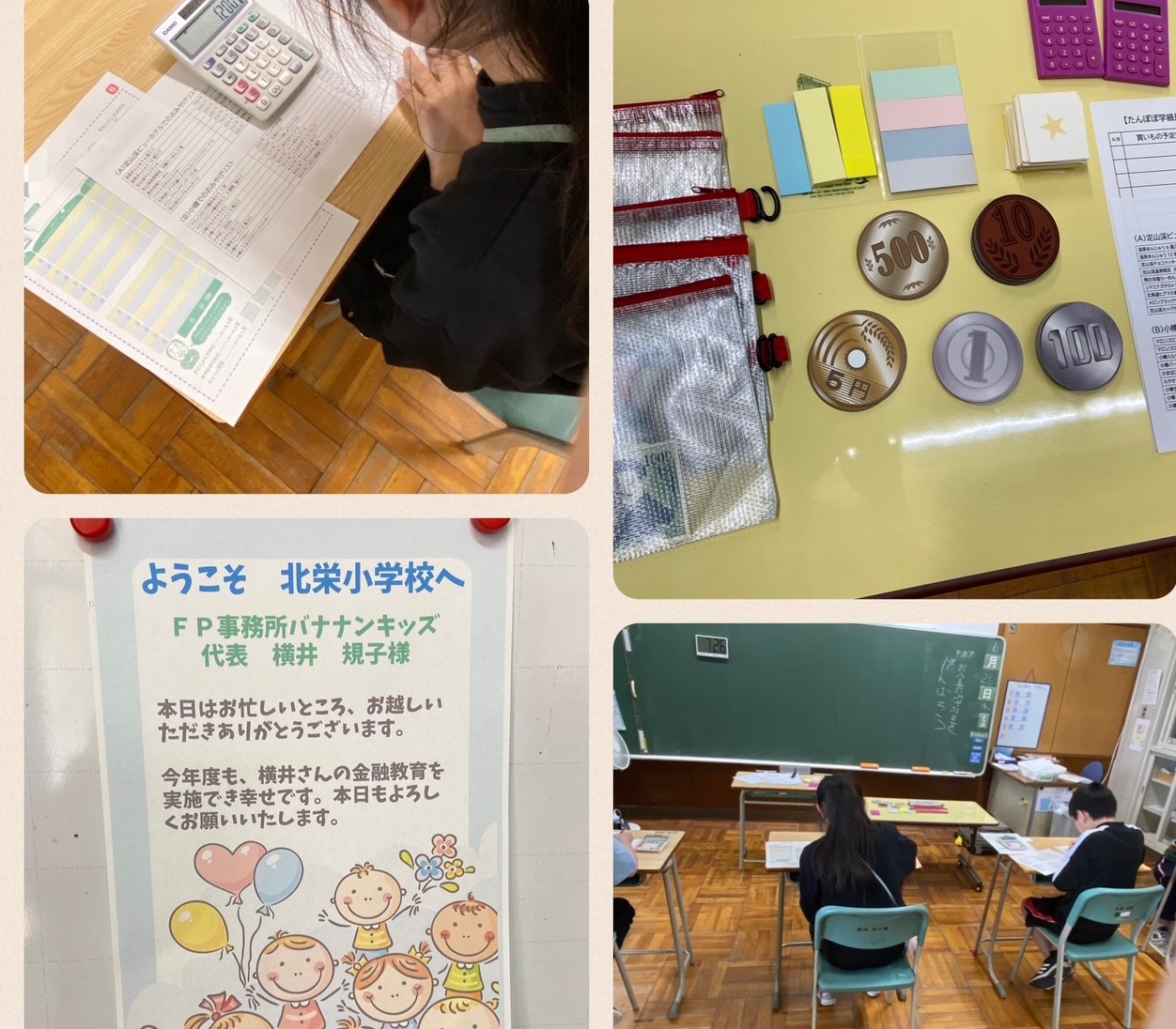 こちらの学校では毎年1回、特別支援学級で金融教育をしております。内容は毎年変更していますが、お金をぴったり払う練習からスタートし、徐々に内容をアップしていき、今回は6年生対象に「修学旅行ゲーム」をいたしました。