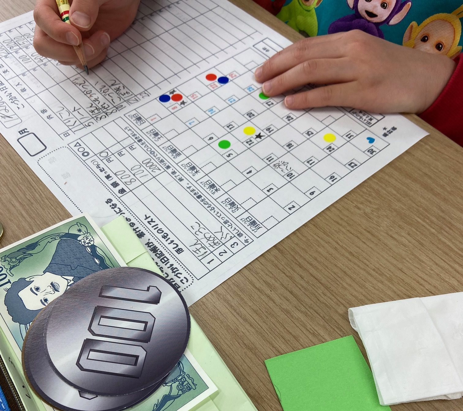 カレンダーを見ながら、考えてお金の使い方を学ぶことができ、おこづかい帳のつけ方も学ぶことができます。