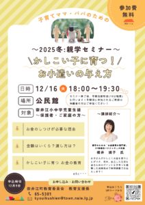 と、子どもの『お金のしつけ』に悩む保護者、教育関係者のために講座を開催したいと、奈井江町教育委員会様からご連絡をいただきました。